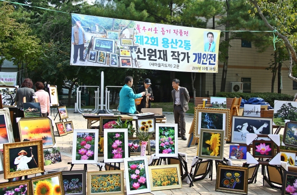 2018년10월18일 오전11시부터 달서구 용산2동 소재 용주공원에서 용산2동(동장 강병걸) 새마을 협의회.부녀회 주최 및 용산2동 주민자치위원회 후원으로 이웃사랑 나눔 바자회를 개최하여 주민들의 호응을 이끌어낸 가운데 신원재 사진작가의 개인 사진전도 열려 눈길을 끌고 있다.