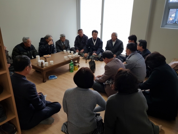 ○ 이날 합동세배에는 각 마을 노인회장님들과 어르신 40여명, 금요회원 20여명이 함께 했다. 김종만 가천면 노인회장은 매년 설이면 잊지 않고 찾아와 주시는 금요회원들에게 고마움을 표하며 올 한해도 승승장구하기를 기원한다는 말을 전했다.