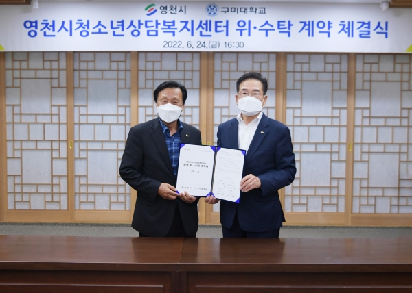 구미대학교(총장 정창주)는 24일 영천시청(시장 최기문)에서 영천시청소년상담복지센터 위수탁 계약을 체결하고 새롭게 운영을 시작한다고 밝혔다.