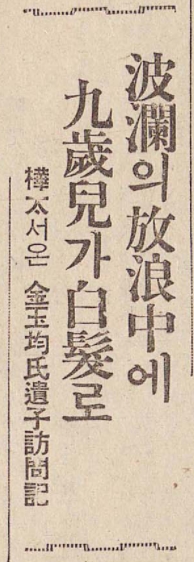 갑신년 당시 9세이던 김옥균의 아들이 러시아, 일본(삿포르)으로 유랑하다가 잠시 귀국해 김균의 생존사실을 보도했던 매일신보가 김옥균의 아들을 인터뷰한 것이다.